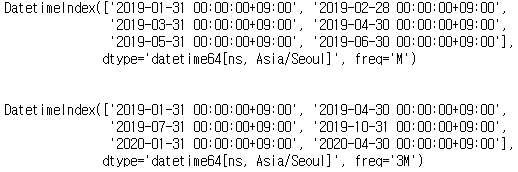 freq='M', # 시간 간격 (M : 월의 마지막 날)
