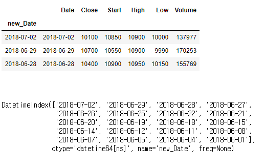 #시계열 값으로 변환 된 열을 새로운 행 인덱스로 지정, 기존 날짜 열은 섹제