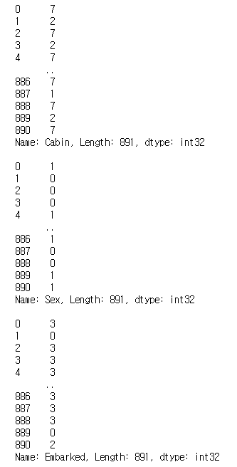 # titanic_df.Cabin = le.fit_transform(titanic_df.Cabin) # fit_transform 으로 값을 숫자로 변경시킨다.