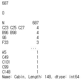 print(titanic_df.Cabin.isnull().sum())# null값이 총 몇 개인지 보여준다. 지금은 687개