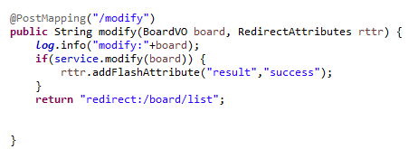 public String modify(BoardVO board, RedirectAttributes rttr) {