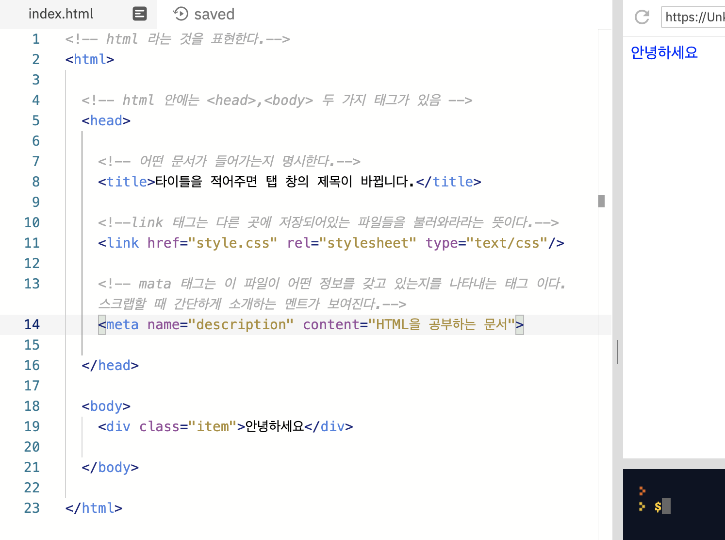 <meta name="description" content="HTML을 공부하는 문서">